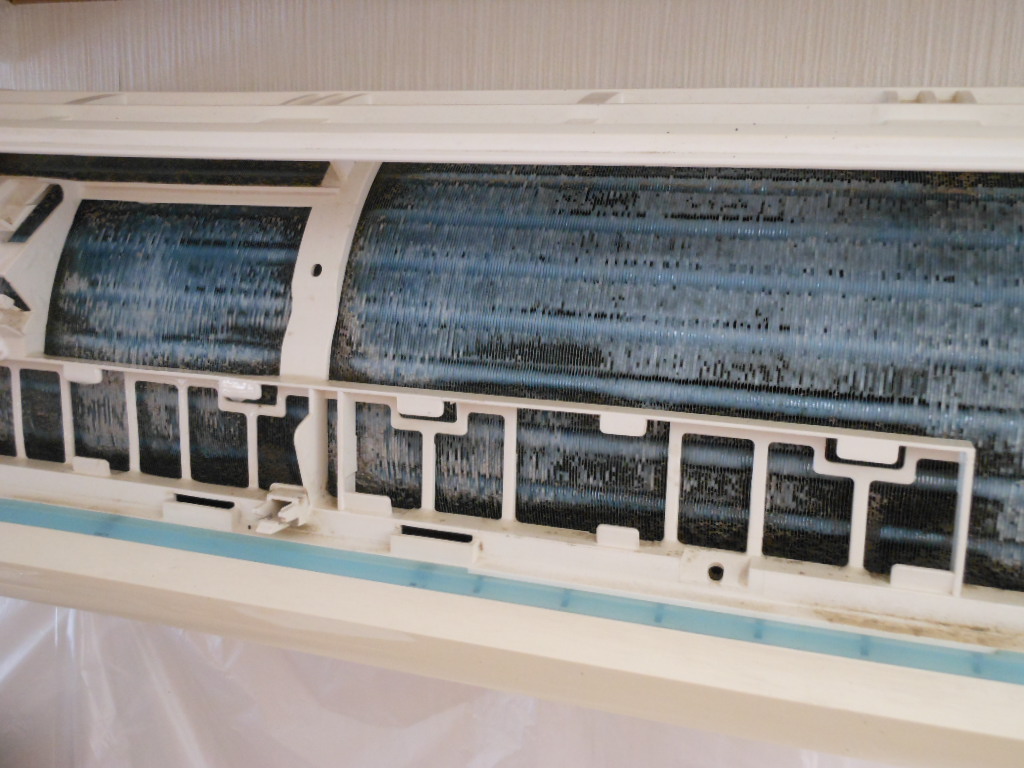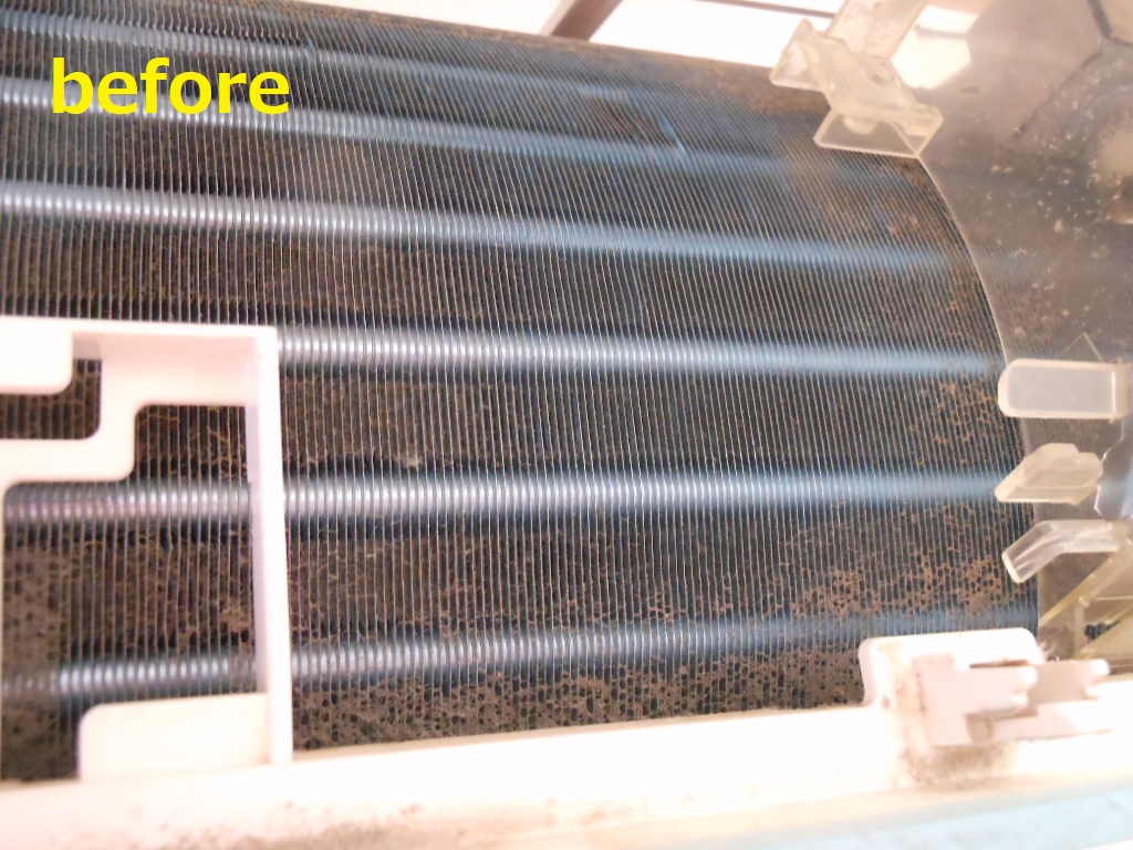 これでは、電気効率も悪くなっていることでしょう。しかも「かび臭いにおい」がかなりしてます。