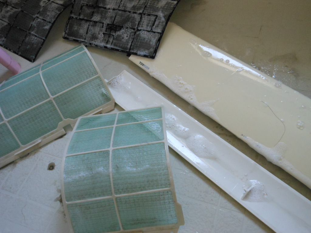 フィルター、ルーバー、パネルは中世洗剤で良く洗い、乾燥させておきます。