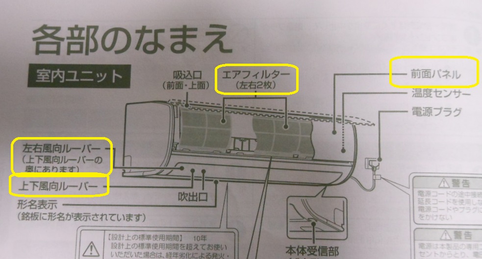 説明書にフィルターや前面パネルなどの外し方は書いてありましたが、今回は「ルーバー」も頑張って外してしまいました。(自己責任!)