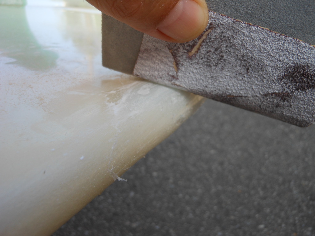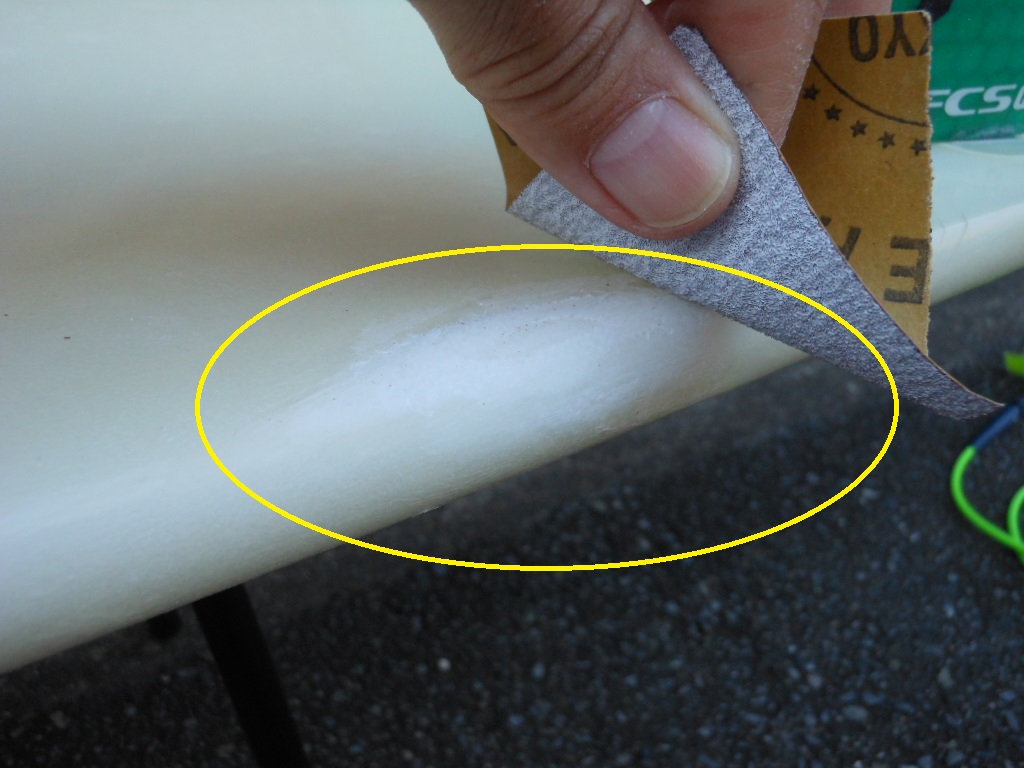 接着を高めるためにキズ部位をサンドペーパーでサンディングします。