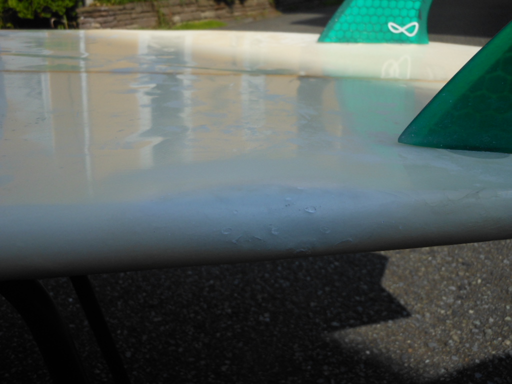 (今回はラウンド後のシャワー場所でボードを洗ってる時に、誤って落としてしまいました。。)